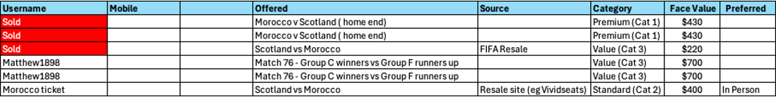 Step 5: You will receive confirmation of your registration and a link to the detailed ticket list. If selling, your ticket will be added to the list